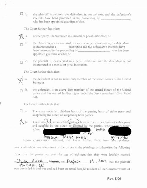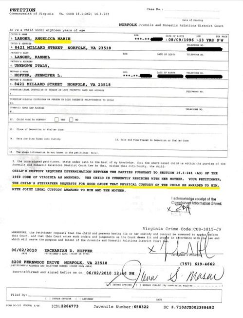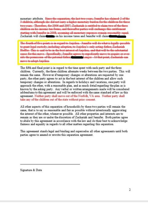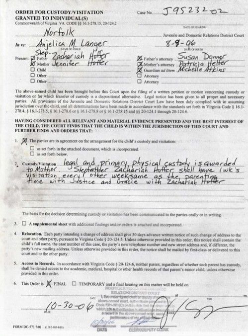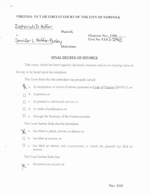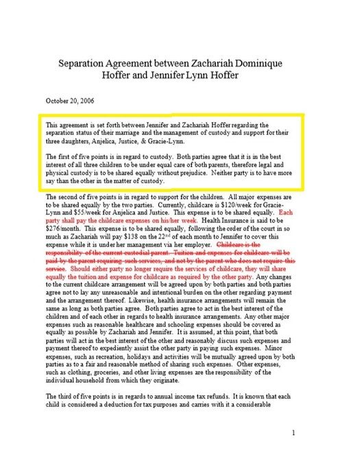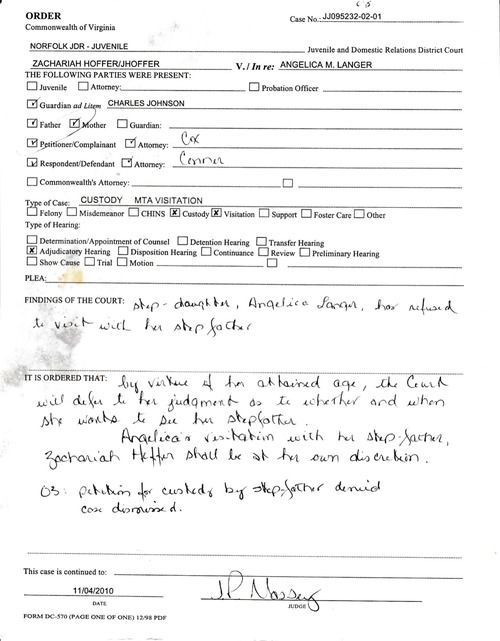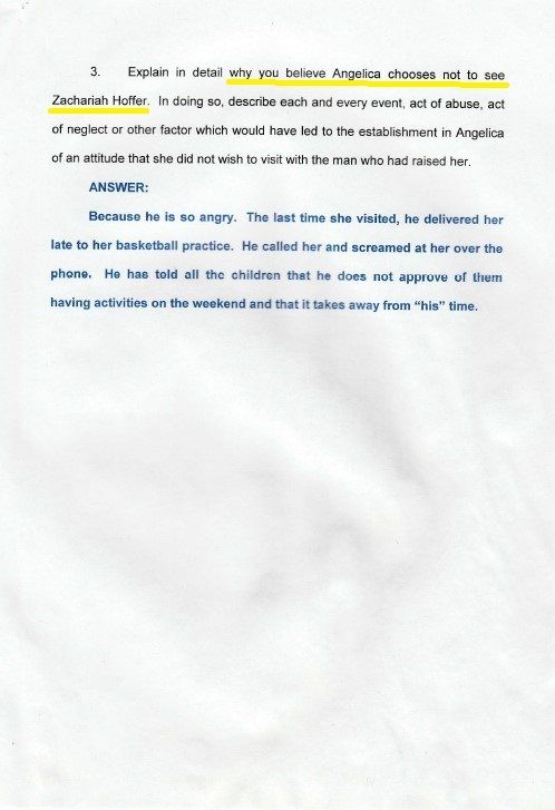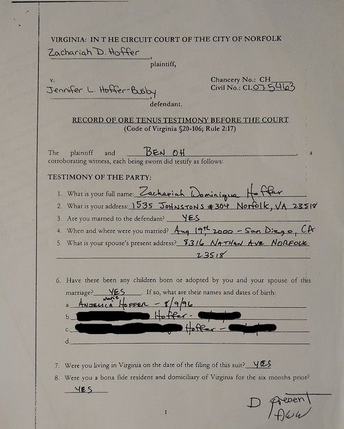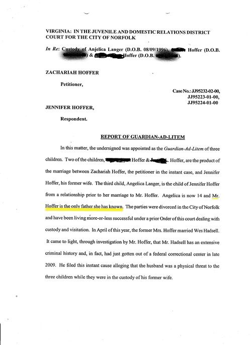 DIVORCE DOCUMENTS - Zachariah Hoffer is Anjelica Hoffer's father - acknowledged before a judge.
