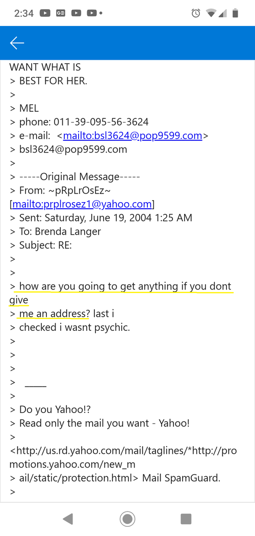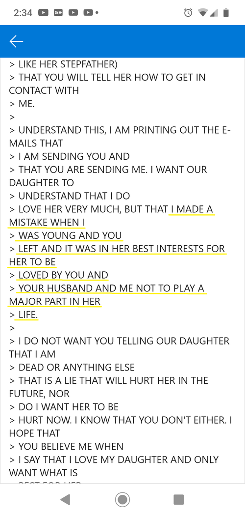 EMAIL FROM MEL (bio dad) to the mom - granting me permission to adopt Anjelica. The mother knew this was my desire.