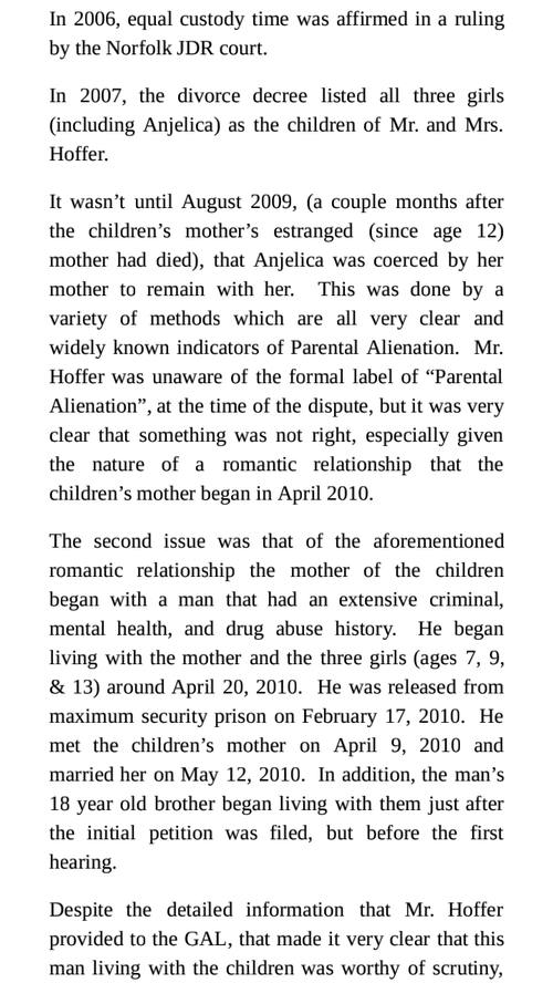 My first daughter, Anjelica Hoffer (aka AJ Hadsell), was murdered by her step father in Norfolk, in 2015. I lost custody of her just after he moved into her mother's home in 2010. The state family courts could have helped, but instead they hurt the situation.
