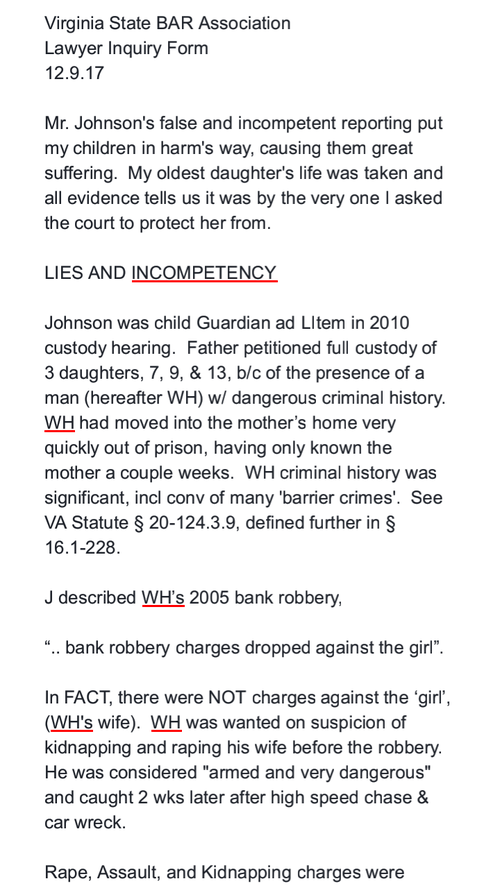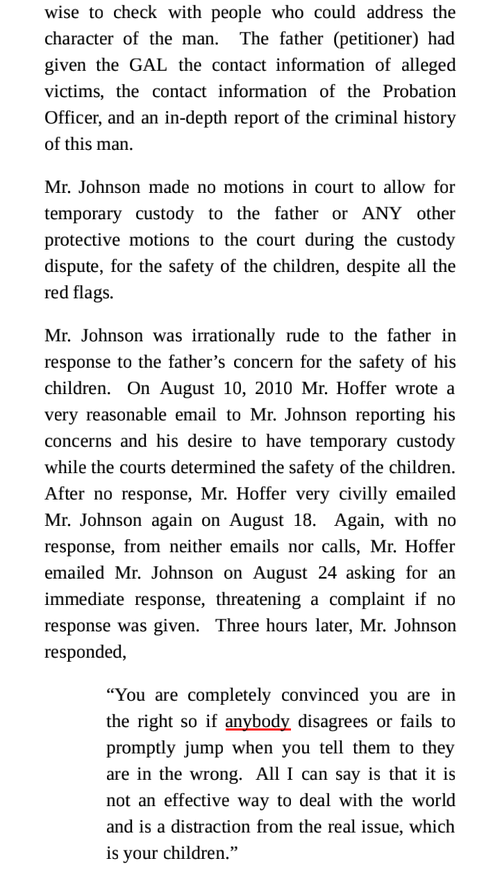 Complaints about Anjelica's GAL , CHARLES JOHNSON went NOWHERE, neither during trial nor after.