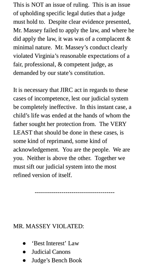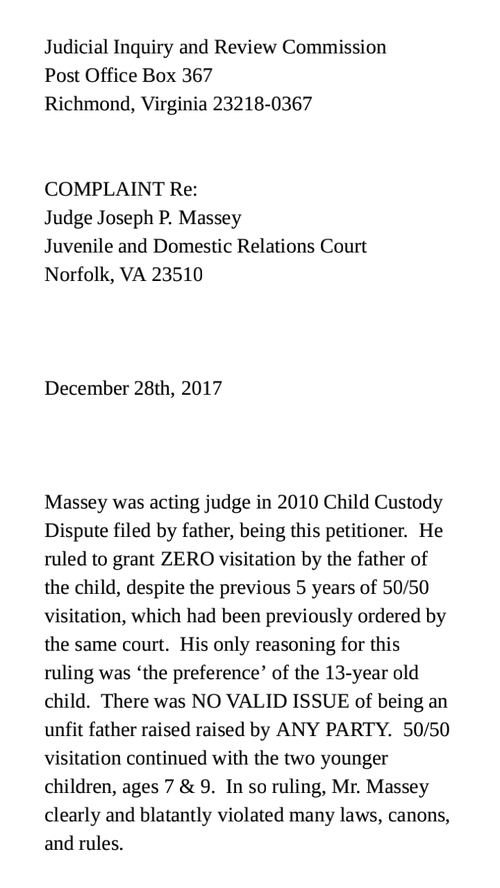 Joseph P. Massey. Custody Judge - He clearly bypassed statutes, Judicial Canons, & theJudicial Benchbook, in order to place Anjelica with a sexually violent career criminal.
