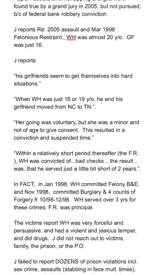 - In our case the probationer had a history of rape, strangulation, abduction, kidnapping, career criminal, burglaries, robberies, arson, serious mental illness, drug abuse, other crimes not known, etc.. This should have forbidden him from being alone around my daughters.