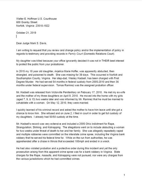 A letter to Chief Judge Davis trying to get change to U.S. Probation Services