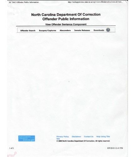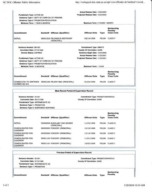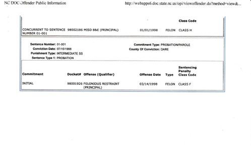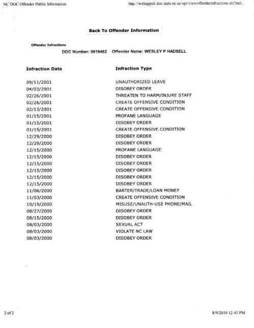 - August 3, 2000 - September 11, 2001 - Dozens of infractions in prison, including Threats and Sexual Act