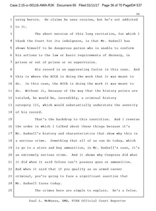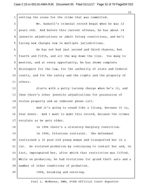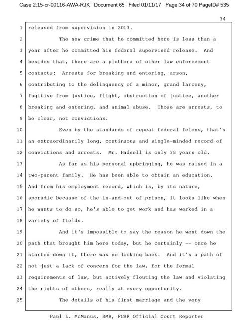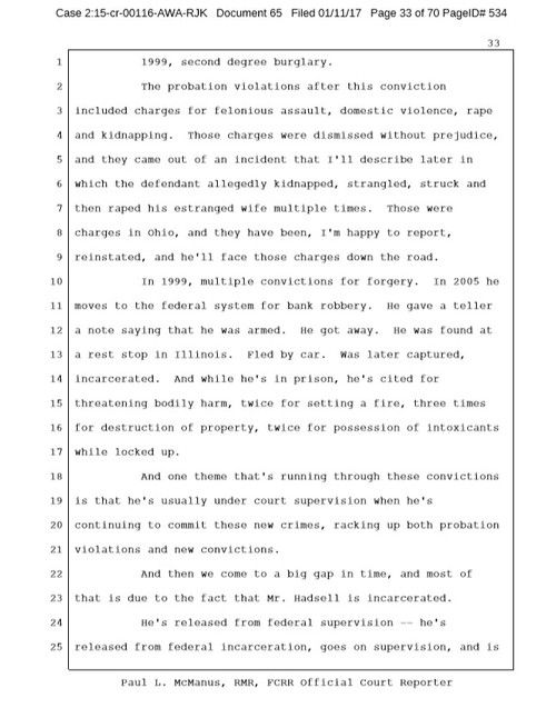 Nov. 2016 - Pages from the sentencing transcript taken from the Probation Officer's Pre-Sentence Report